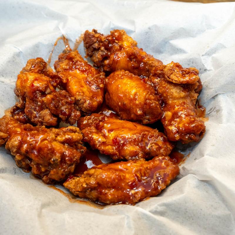 Fresh jumbo wings deep fried to golden brown perfection and tossed in homemade specialty sauce (8pcs) / Choice of your favorite sauce.