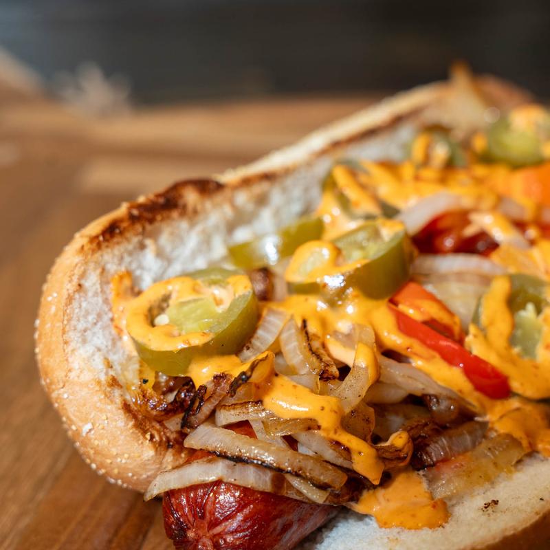 Grilled onion and jalapenos, crispy bacon with spicy mayo.