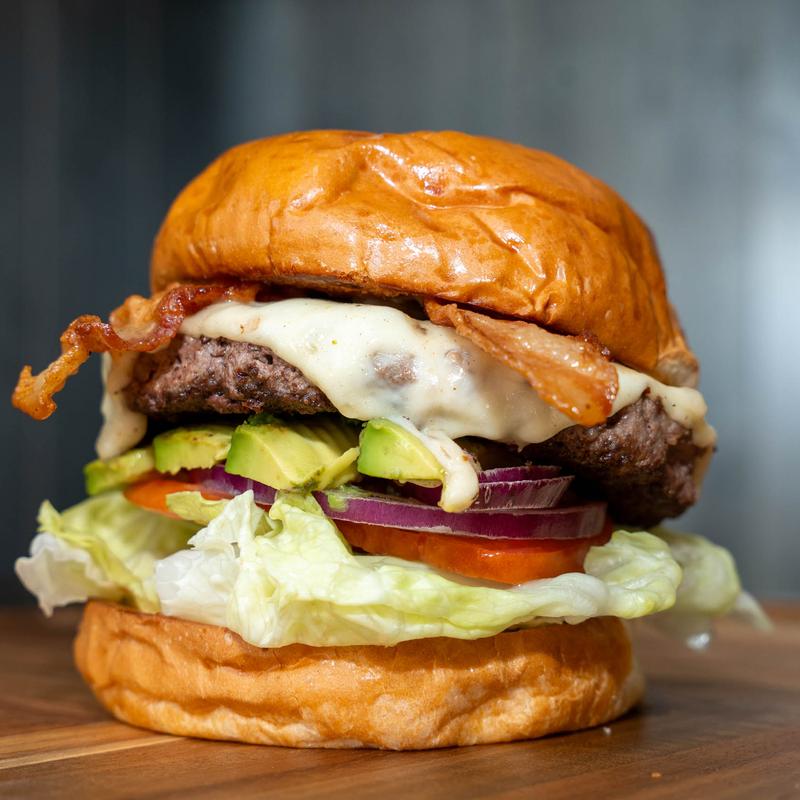 Fresh avocado, crisp bacon, Swiss cheese, lettuce, tomato, red onion, pickle, and Thousand Island.