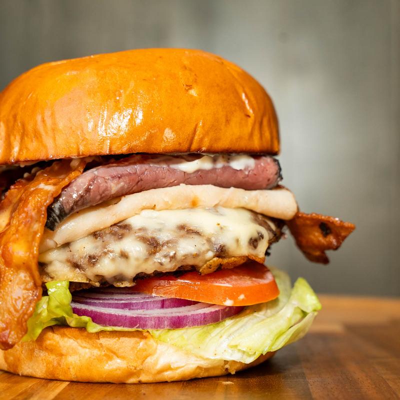 1/2 pound double patties, double cheddar cheese, lettuce, tomato, pickle, & Thousand Island.